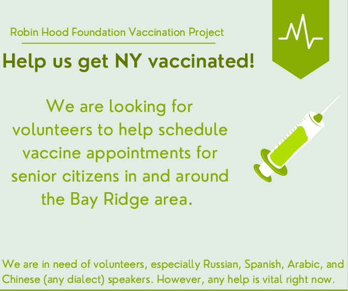 Three juniora, Maliha Rafia, Kripamoye Biswas and Fatima Bagom, are working on a project with the Robinhood Foundation (RHF) to help get 1000 seniors in the Bayridge area vaccinated. Their organization is called HelpUsVaxin8.