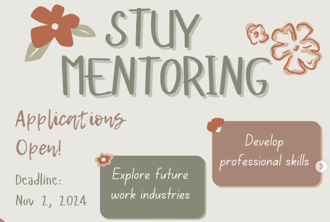Do you want to work with Stuy alumni and explore things beyond just academics? Look no further because Stuy's Mentoring program teaches you how to write a resume, ace an interview, find out more bout your future after high school, and more! ny grade student can apply to be a mentee! Fill out an application at