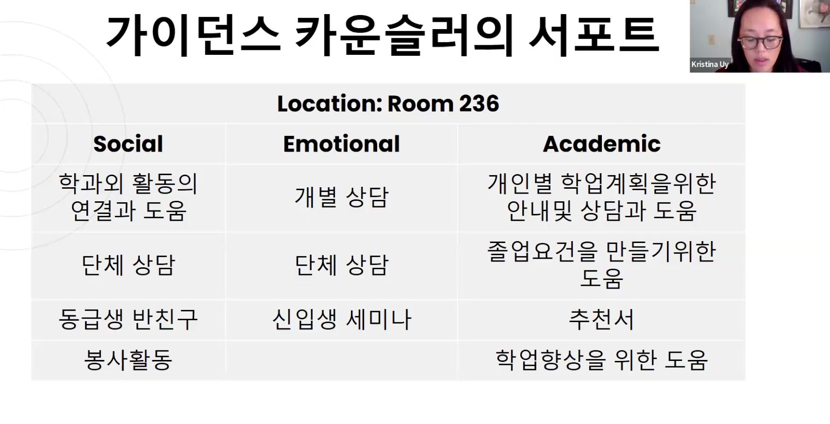 During the month of November, School Counselor, Ms. Kristina Uy held two virtual workshops for Korean speaking famlies. You may view the recordings from those workshops at the links below!