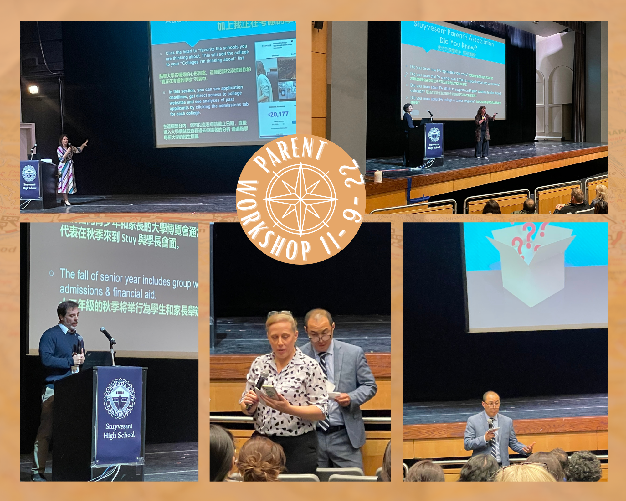 On November 9, 2022, we held our annual Sophomore Parent Workshop (our 7th year!) in person in Stuyvesant's theater. About 180 enjoyed the live presentation on Early College Awareness from Director of College Counseling, Mr. Jeffrey Makris, along with an Overview of Naviance from Director of Family Engagement and School. Business Manager, Ms. Dina Ingram. Assistant Principal, Ms. Casey Pedrick provided a presentation on Navigating Teenage Freedoms and the Parent's Association updated our 10th grade families on ways to become involved at Stuyvesant. Principal, Dr. Seung Yu held a detailed Q&A as well. We thank the Parent's Association's Hospitality committee for providing refreshments before the workshop giving families opportunity to socialize, mingle and get to know one another. We also thank the PA's SpiritWear committee as well as the Tech Committee for recording the event so we can share it with those unable to attend in person. If you missed the presentation or wish to review it, please see the SlideDeck available here in English with Chinese translation and view the recording at this link.