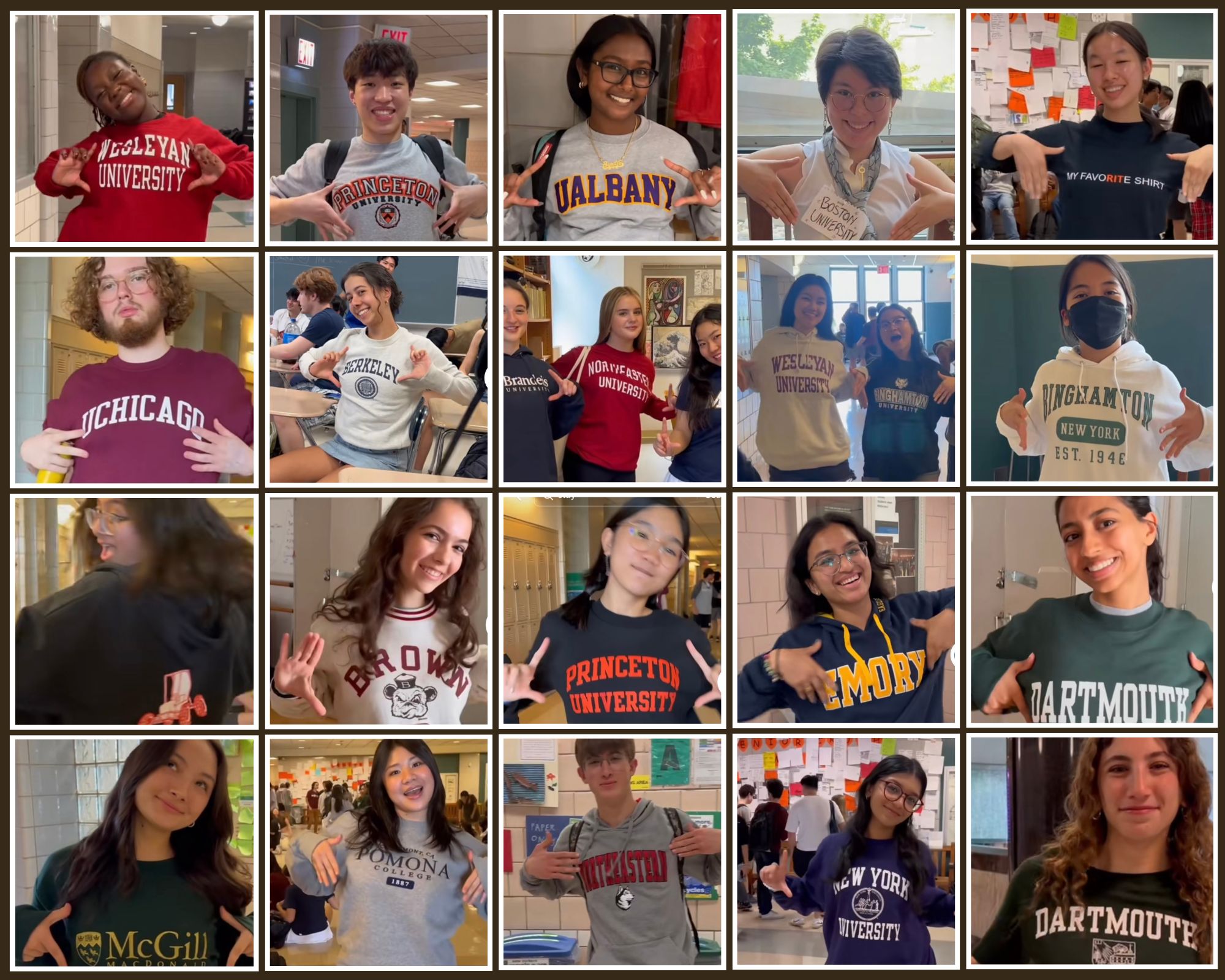 Seniors celebrated College Acceptance Day last week by wearing their College Apparel -- a Stuy tradition returned! Congratulations to the class of 2023! We are so proud of all of you and can't wait to hear about your amazing accomplishments ahead and all the 'places you'll go'! The Senior Caucus generated TikToks from submissions to celebrate. Our seniors applied to over 459 colleges and celebrated over 331 acceptances this year! In the weeks leading up to College Apparel Day, they also supported each other embracing disappointment along with celebrating with a College Rejection Wall in the senior atrium. Cheers to the class of 2023!