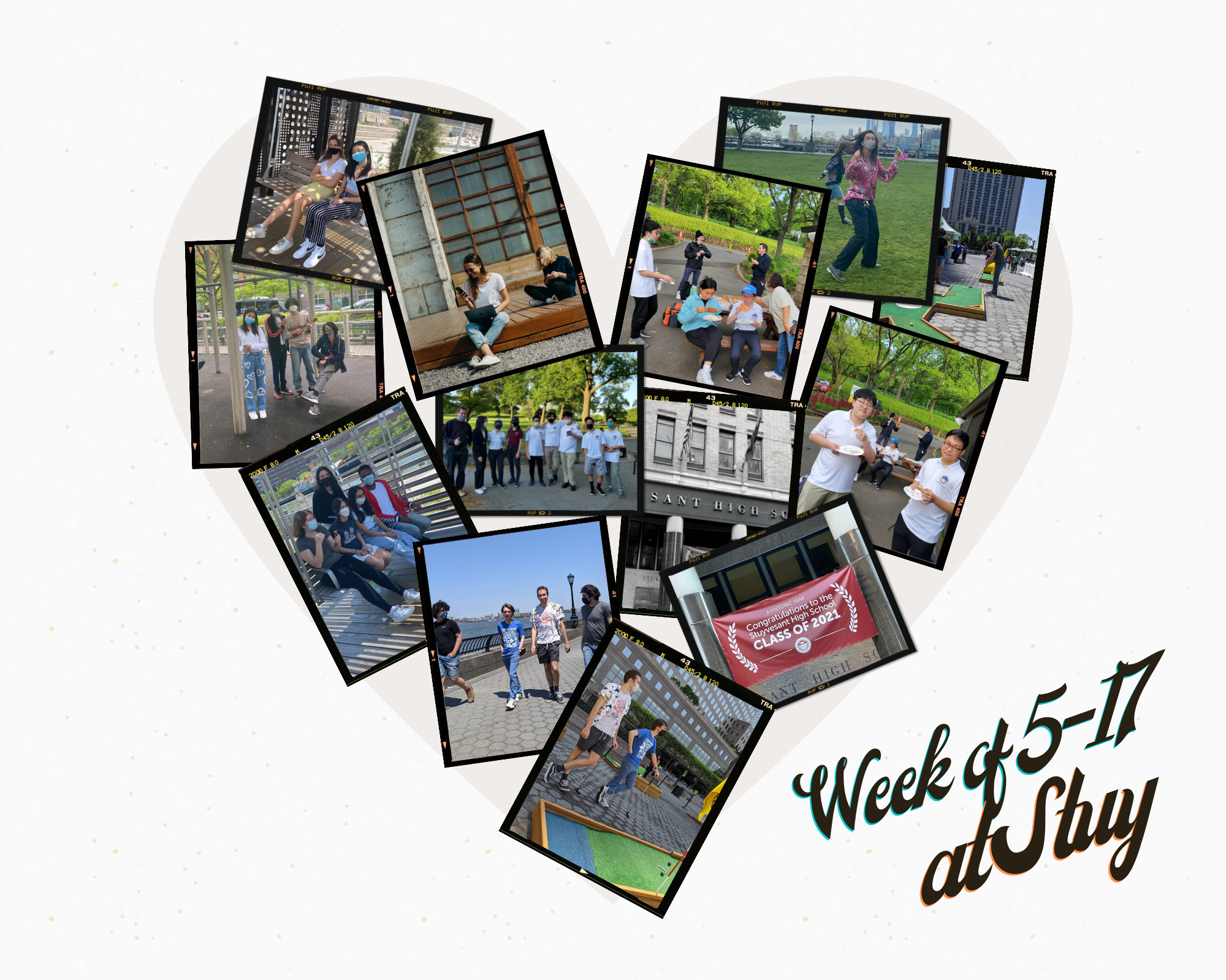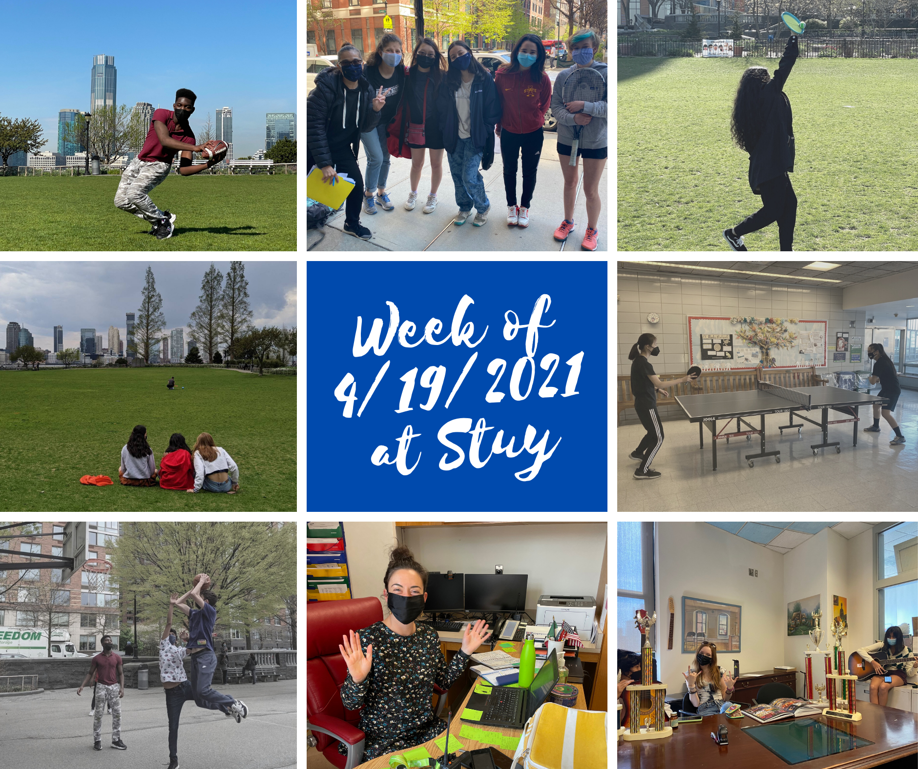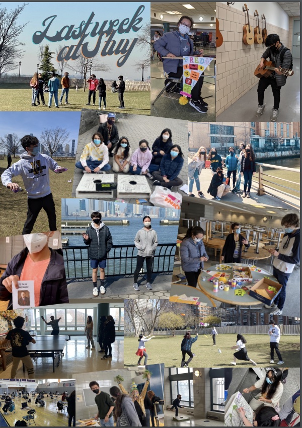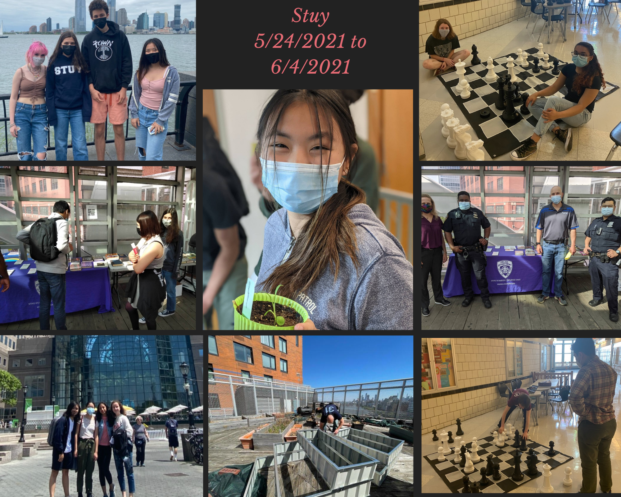 WEEK OF MAY 17, 2021 - This week, students took a walking tour around Stuy and bumped into free mini golf at Brookfield Place during their free period on a sunny summer day. They also got to enjoy more Miles with McAuliffe as well as hang out at Pier 25 on the swings. We are grateful to the Stuy Parent's Association for the celebratory banner in honor of the Class of 2021! Thank you to our hard-working custodial staff for hanging it perfectly outside our main entrance!