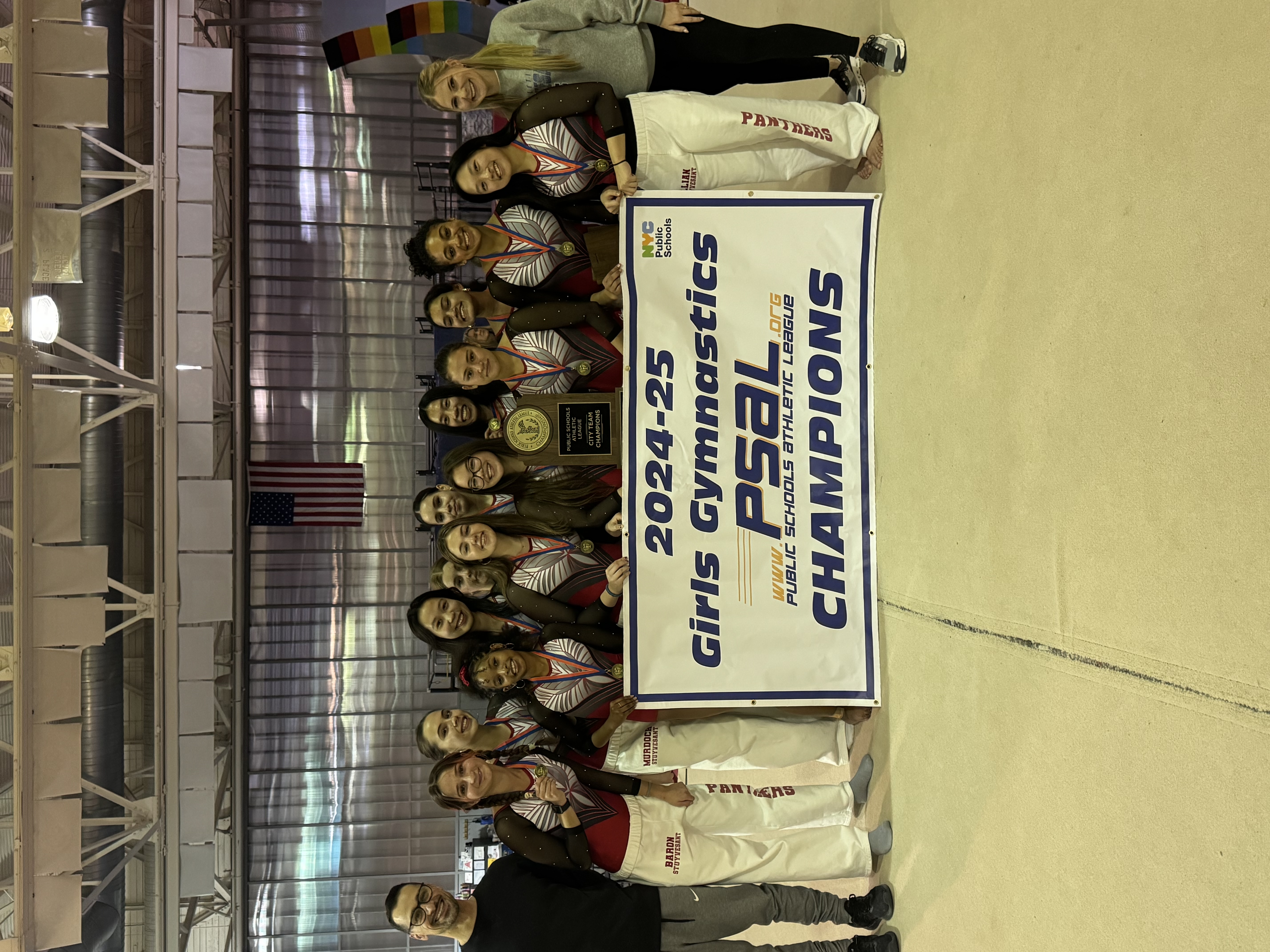 Congratulations to the Stuy Girls Gymnastics Team! Stuy won first place for the first time in program history as PSAL City Champs! The picture is with our two seniors Alisa Long and Min Hollweck! We'll miss them! Congrats to all!