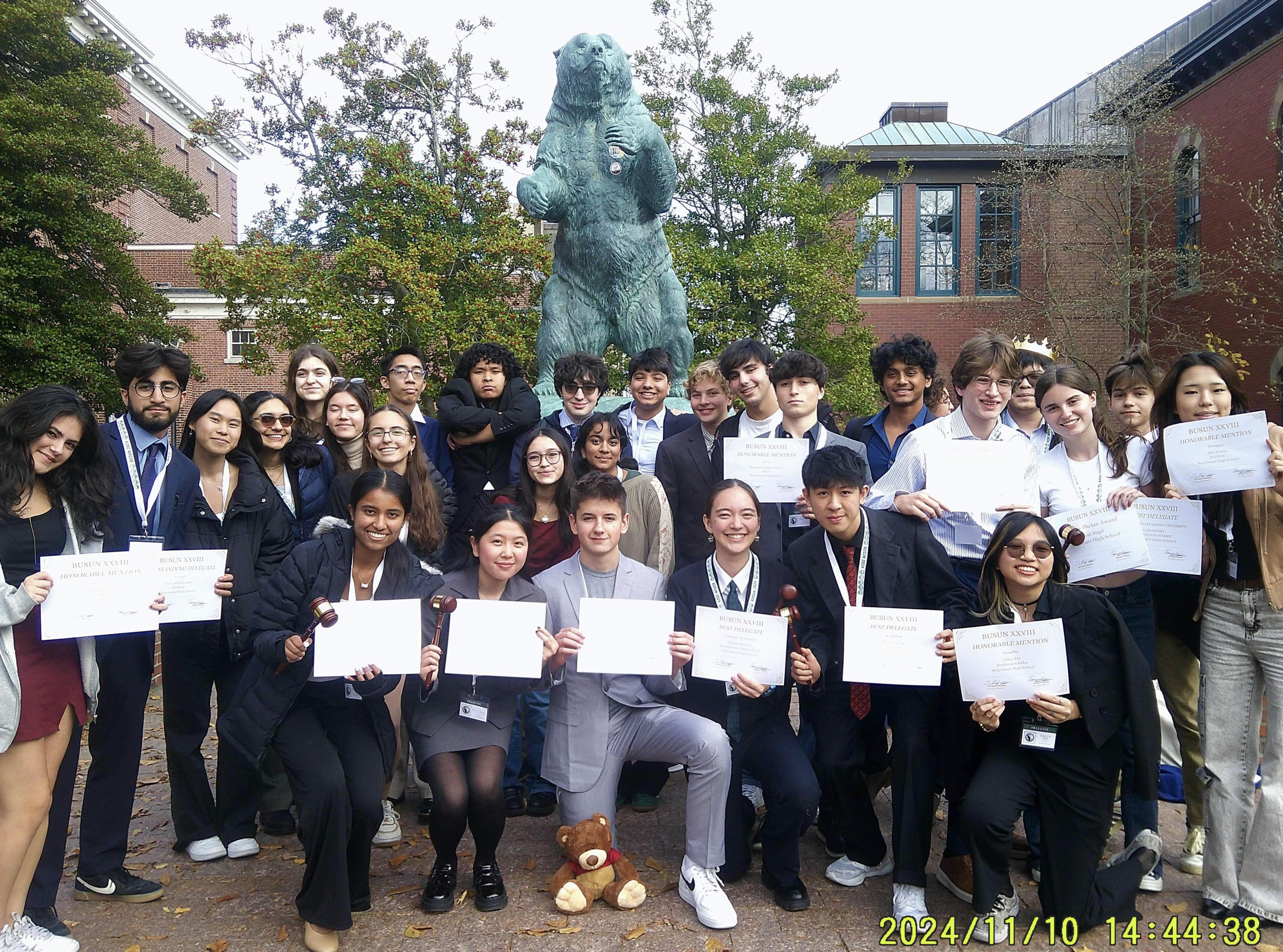 This past weekend (November 8th-10th), the Stuyvesant Model United Nations team attended its first collegiate conference of the year, travelling all the way to Providence, RI for the Brown University Simulation of the United Nations (BUSUN). On top of numerous individual awards, including five Best Delegates, the team picked up the Best Large Delegation award at the conference. Congratulations to all of the delegates who attended for their hard work and dedication, and now on to the next conference!