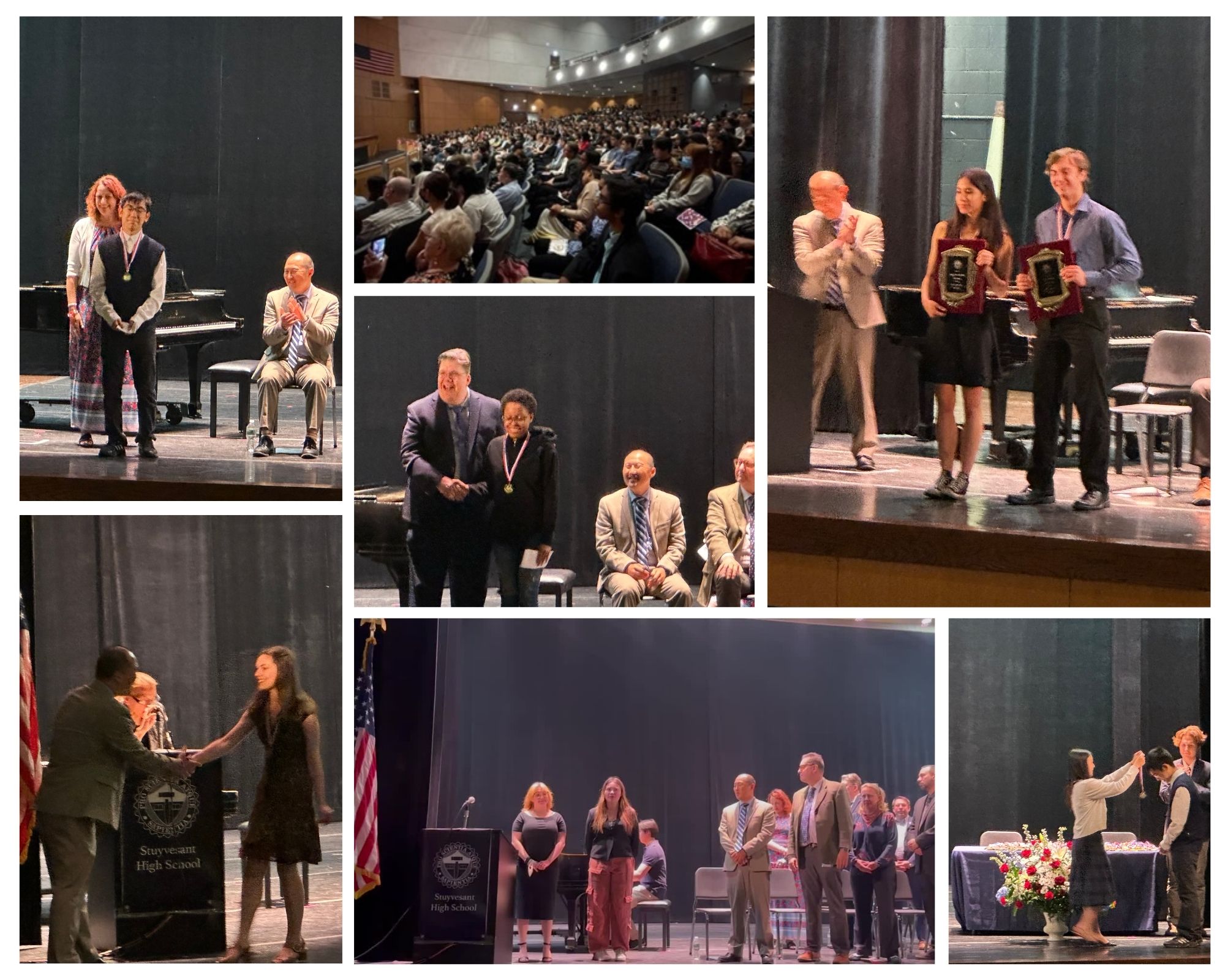 On a memorable day, June 7, 2023, the seniors in the class of 2023 and their families gathered in the theater for Senior Awards Night. Congratulations to 400 seniors who were awarded 703 awards! Congratulations as well to the class of 2023 salutatorian, Sophia Wan Brodsky and valedictorian, Lewis Holland! To see a the program with a full list of seniors and achievements, click the link. For a full size collage click here.