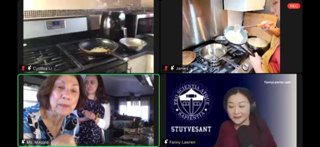 Congratulations to Stuyvesant's Parent Association and to Biology teacher (and Cooking for Stuy Top Chef) Ms. Marissa Maggio with her mother, Mrs. Maggio, as they lead our second live cooking webinar on March 13. Congrats as well to Junior Cynthia Li and her mother Angela Chen, and Freshman parents, Rena Zou and James Lin.