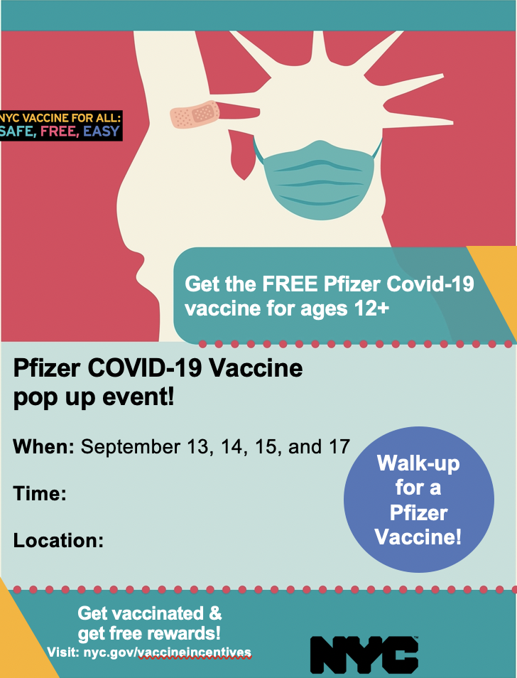 To make vaccines as accessible as possible, pop-up vaccination sites will be at every DOE building serving students 12 years of age and older during the first week of school, including Stuyvesant High School! Vaccine vendors assigned by the NYC Vaccine Command Center will be available to administer the COVID-19 vaccine to eligible students, families, and staff at our building (and all buildings on this list) on the following dates: