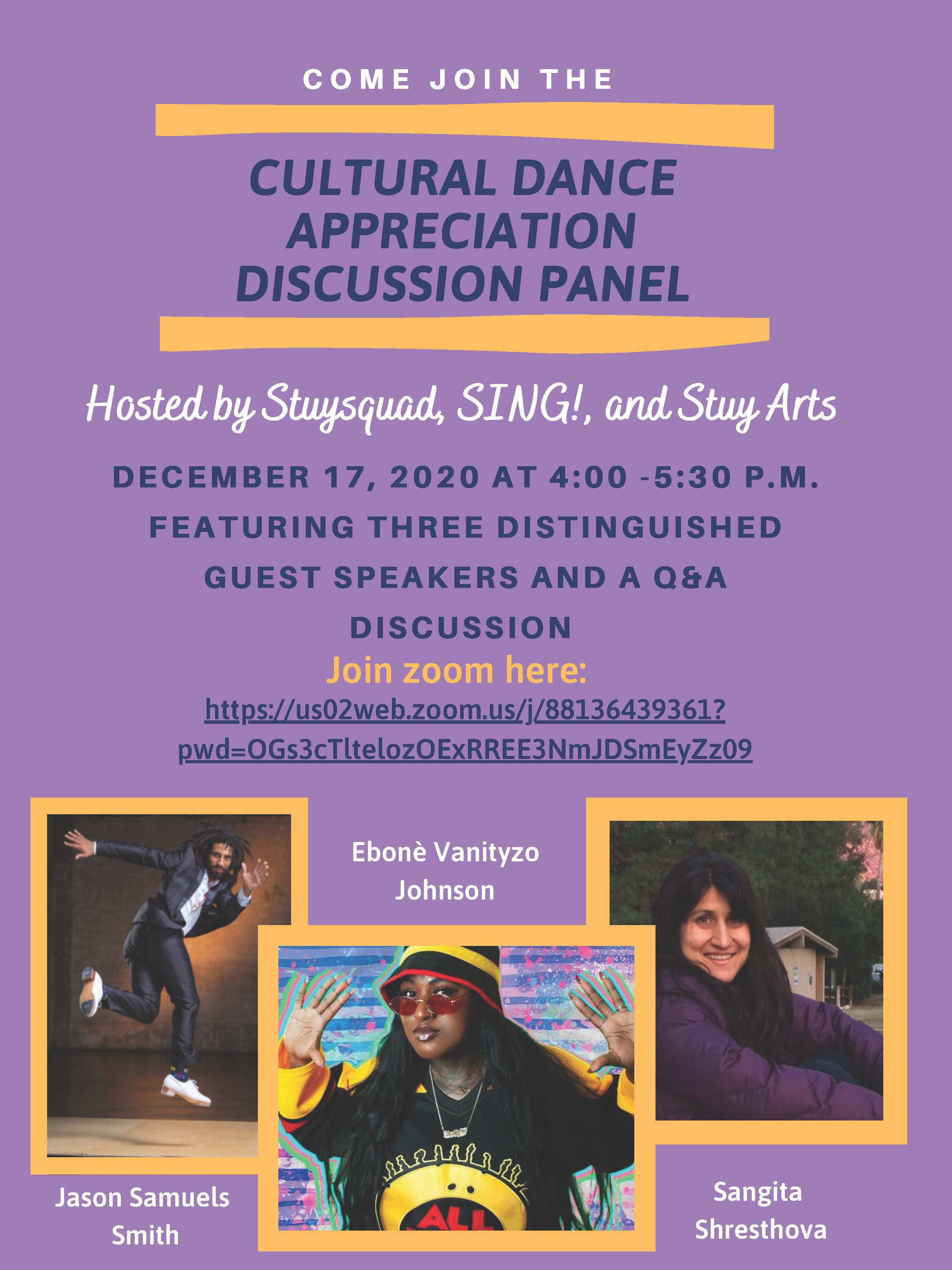 Dance Culture and Appreciation Discussion Panel, December 17th.
