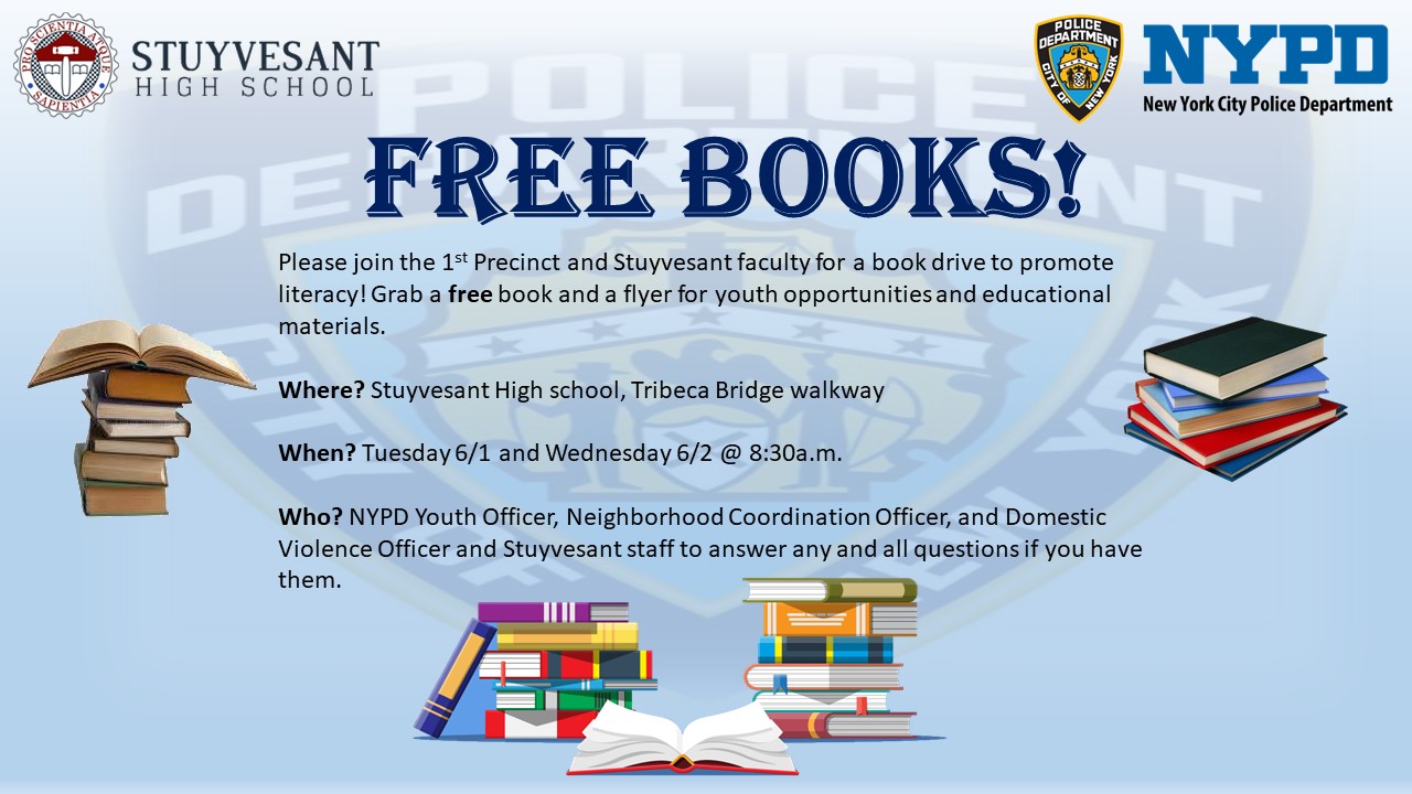 On June 1st and 2nd at 8:30am, Our Youth Coordination Officer from the 1st Precinct, Officer Chan will be running a book drive for the school community. We will set up a table on the bridge with free books and resources for students for community programs.