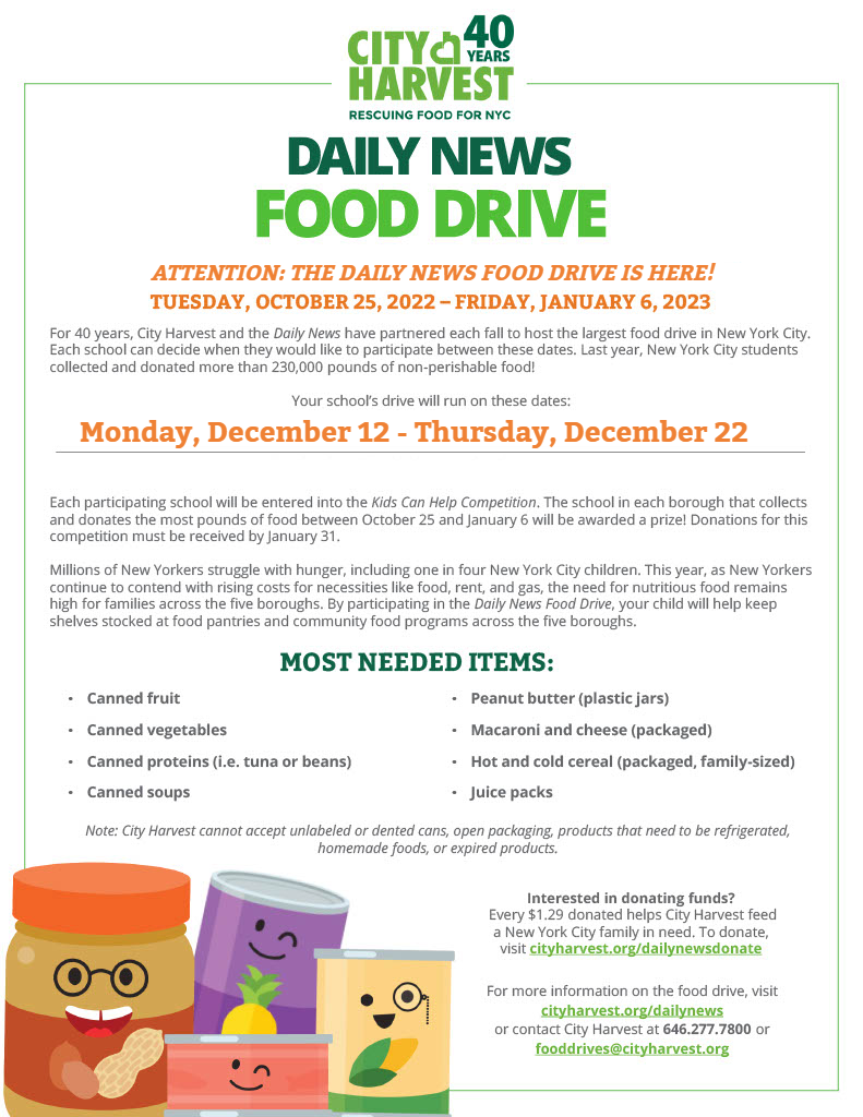 Donate to Stuy's Food Drive by 12/22/22 - City Harvest