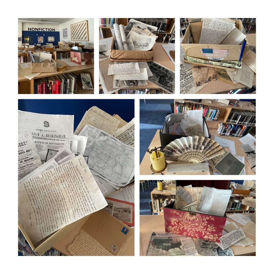 Dr. Greenwald's APUSH students completed a project on the 1850s and 60s called "Scrapbox of the Crisis" in which they researched, created, and commented on a variety of different sources representing the lead up to the Civil War and the war itself. Come by the Stuy Library and rifle through the boxes, read old correspondence, check out the "realia"! See a full size photo collage here.