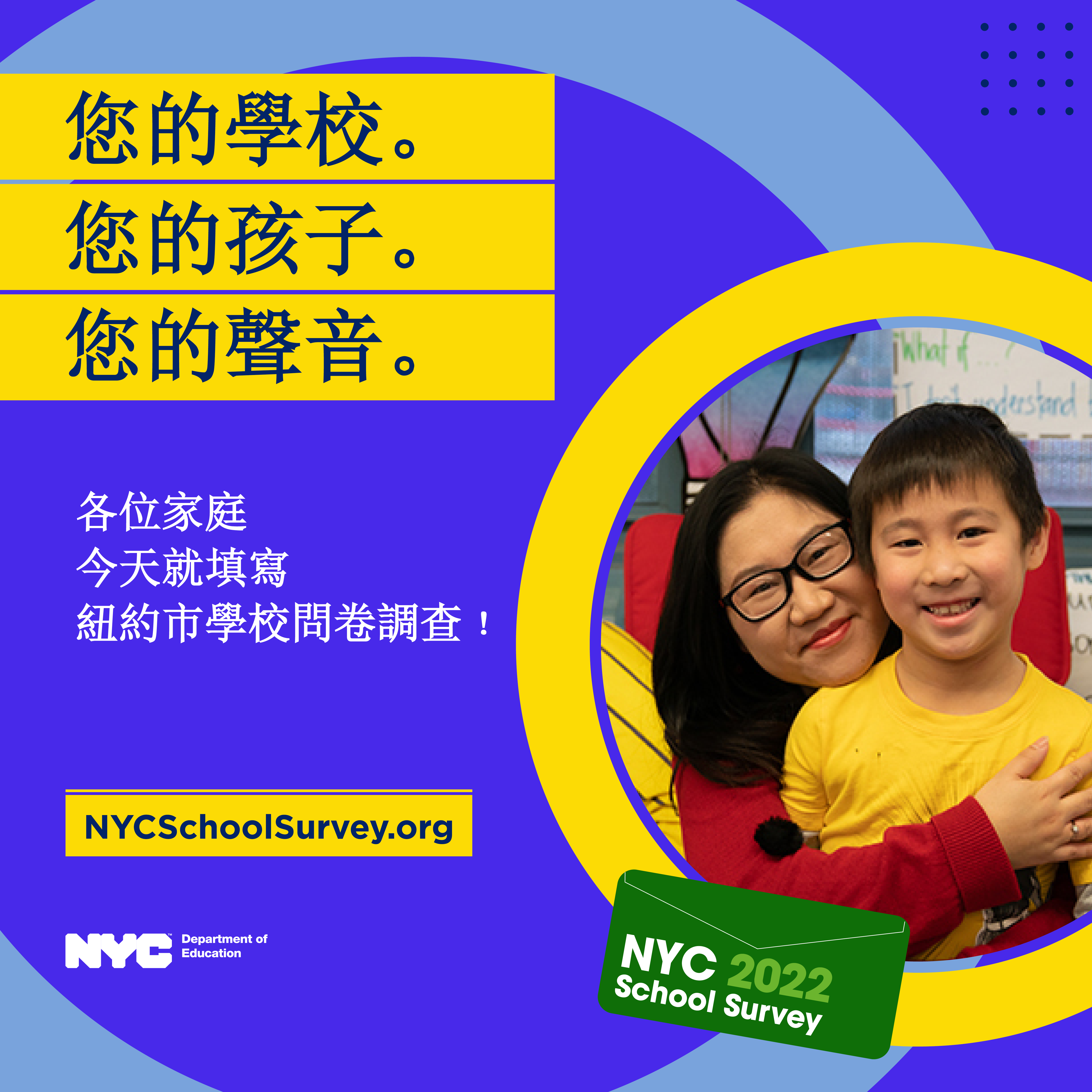 Families can take the survey online via computer or mobile device atNYCSchoolSurvey.org in any of the ten DOE supported languages.Families will enter “f” followed by their child’s nine-digit Student Identification (OSIS)Number.Note that “f” must be lowercase. Families can find their child’s Student Identification (OSIS) Number on their report card, student ID card, or NYCSA account. NEW: If you have more than one child in your family who attends NYC schools, please complete this survey for each child.