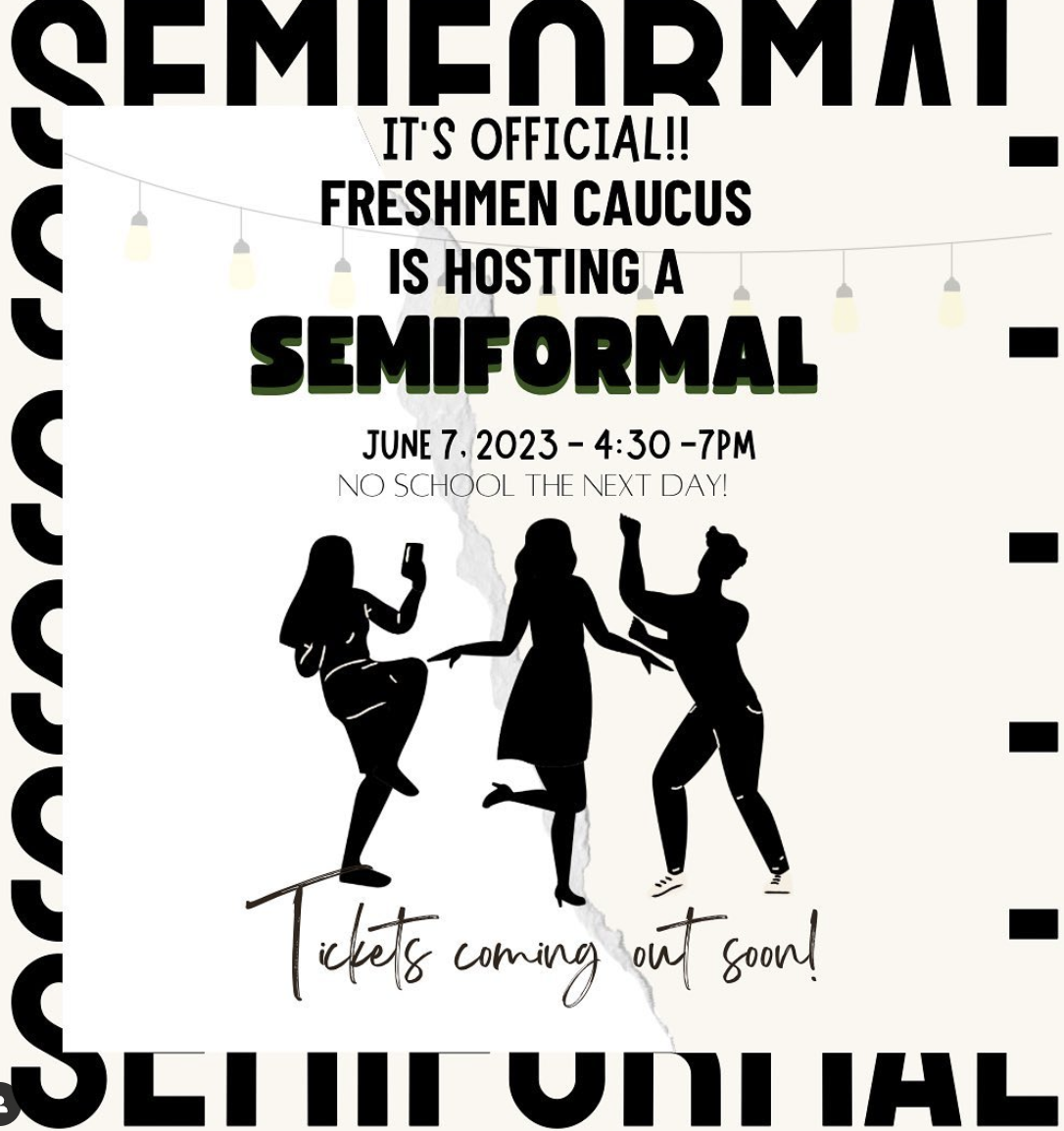 The Freshmen Caucus is hosting a semi formal on June 7, from 4:30-7! The event will take place at the school and tickets are on sale now at this link.