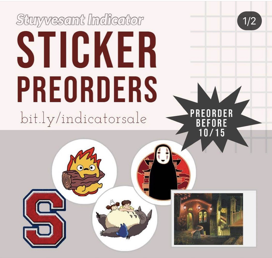 The Stuyvesant Indicator is excited to present its first sticker/tattoo sale! The sale will last until October 30th (10/30), but they are accepting discounted pre-orders until Thursday, October 15th, at 11:59 PM (10/15)! They’ll be selling “S” temporary tattoos, along with four Studio Ghibli inspired stickers. Currently, stickers are $1.50 each, and temporary tattoos are $1.25 each. However, you can save by purchasing a bundle (4 stickers for $4 or all 5 items for $5)! Also, shipping is FREE! Place your orders through the following form: https://forms.gle/hr8U3ia5NbwzrWAV7. For more details, please read the form description. Please consider purchasing items to help relieve the costs of the senior yearbook!