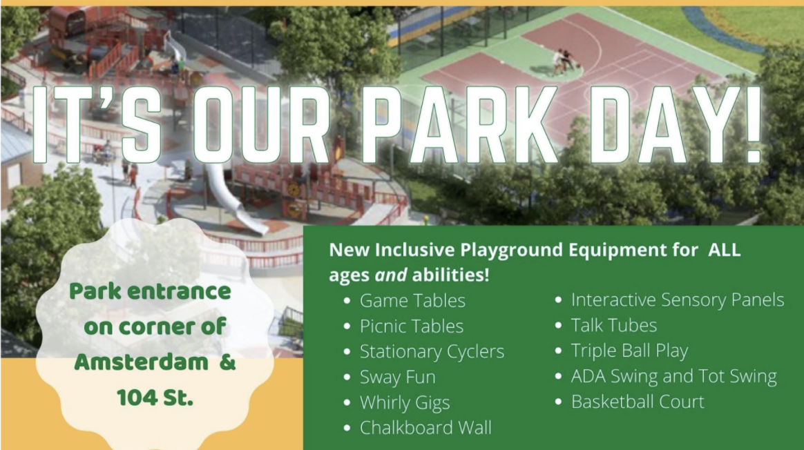 Join Friends of the Bloomingdale Inclusive Park and Playground for a tour of the playground and park design and equipment, along with Wheelchair Basketball, children's games, planting, arts and crafts and activities. "It's Our Park Day" at the Bloomingdale Inclusive Park and Playground located at the Bloomingdale School P.S. 145 and West Prep Academy. Park entrance is on the corner of West 104 Street and Amsterdam Avenue. The rain date is on Sunday, December 5.