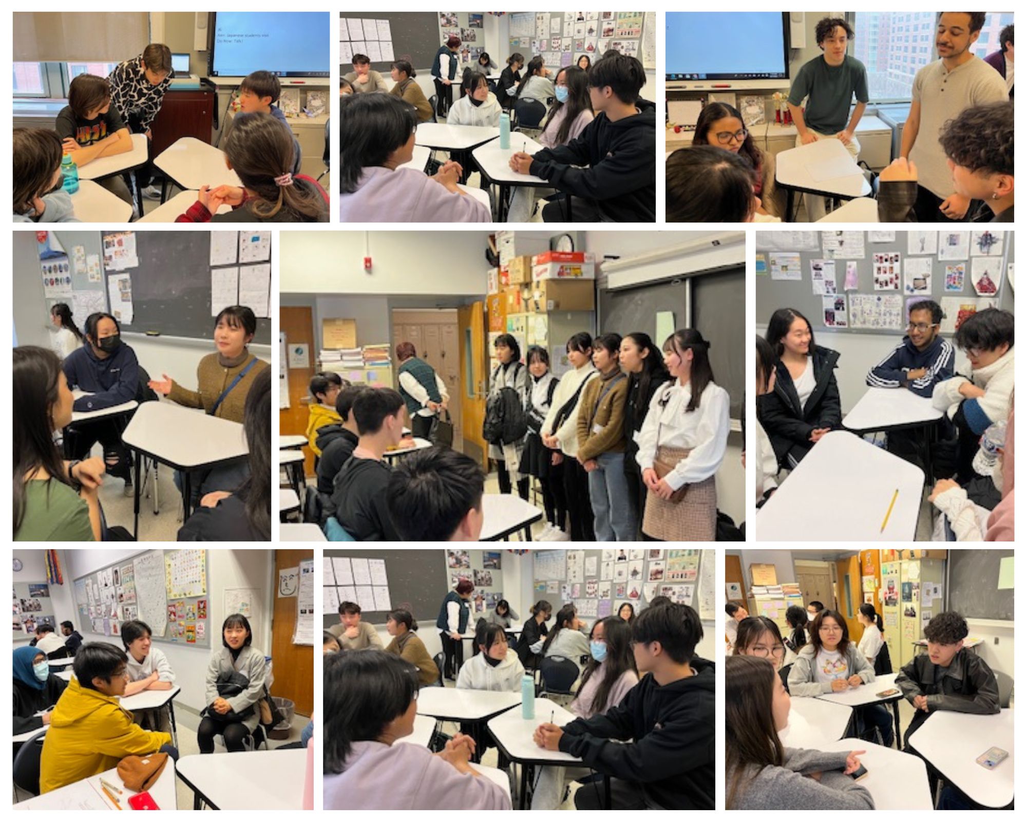 Our students had a chance to talk to them in small groups. Some groups talked about anime while others talked about sports and daily life, etc.. The conversation was lively, and there were many smiling faces. The Stuy students were surprised at how much Japanese they could speak and understand. It was such a fun way to boost their confidence. When the period was over, many exchanged their social media accounts.