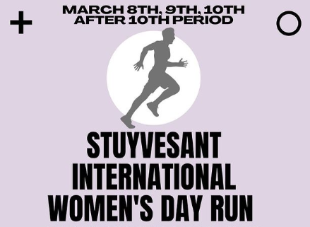 Stuyvesant’s International Women’s Day Run committee is proud to announce they will host the annual IWD Run on March 8, 9 and 10 after 10th period! Walk, run, or skip either 1 or 2 miles! There will be sacks, free stickers and photo opportunities. T-shirts designed by our very own Stuy senior, Chloe Huang will also be sold for $4. Anyone who donates more than that will be automatically entered into the raffle! All profit made will go towards the charity Women’s Education Project. For more information and to sign up, go to https://bitly.stuyiwdsignup.