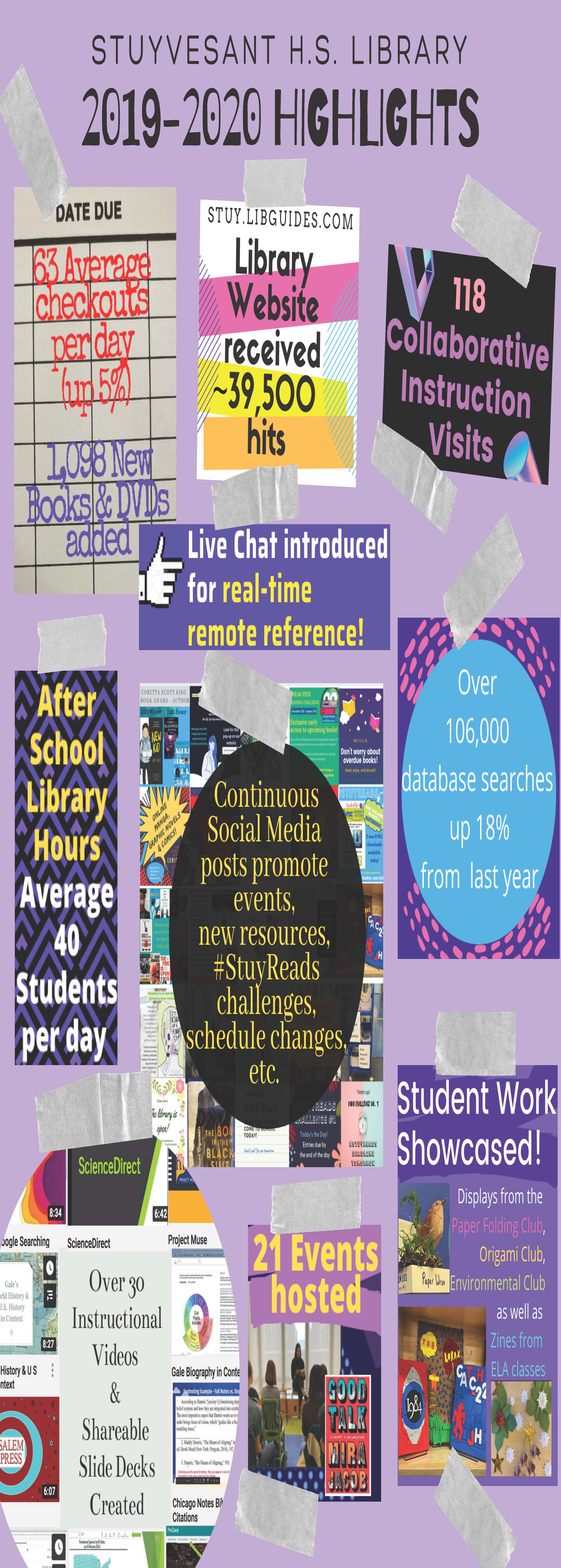 Thank you for all of your support of the Stuyvesant Library program this past year. We are sharing a graphic with some highlights of our accomplishments. We wish you all a great summer and look forward to continued and expanded collaboration with all of your departments in the coming year, whatever it may bri