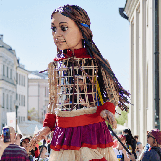 New York welcomes Little Amal, a 14-foot-tall puppet of a 10-year-old Syrian refugee child – and an international symbol of human rights – who comes to New York City Sept 14 - Oct 2. Over 17 days and 55 events, Little Amal visits all five boroughs where artists, civic leaders, cultural institutions, and immigrant community organizations engage New Yorkers with events of welcome in a massive, free, public art engagement produced by St. Ann’s  Warehouse and The Walk Productions.