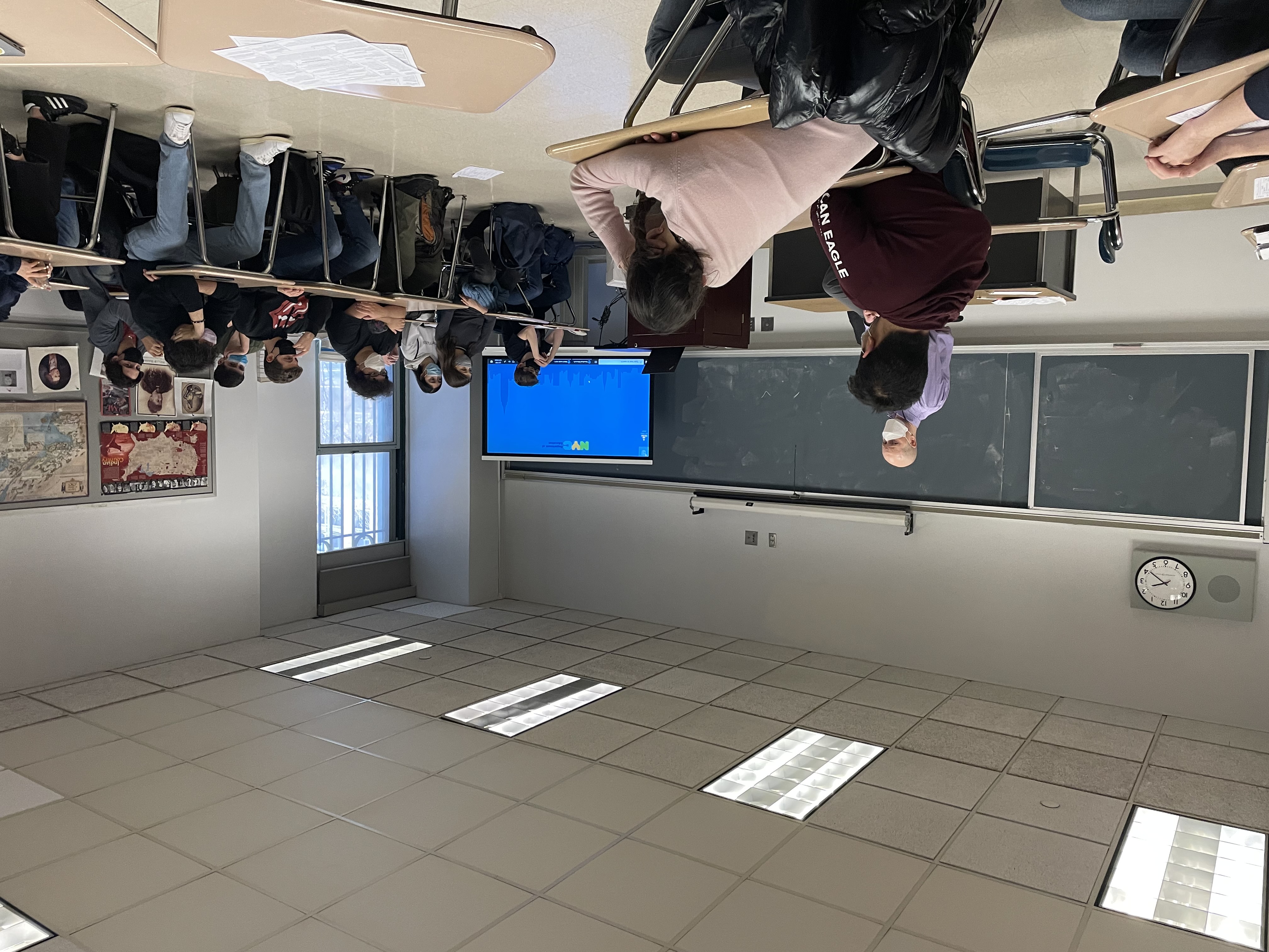 Social Studies teacher, Mr. Robert Sandler shares that he "had Ethan Brovender's (a senior in his Jewish History class) father visit during the last week of classes in January. Shahar talked about his family ‘s history in Ukraine in the 19th century; how the Holocaust impacted his family, and his life growing up in Israel. Shahar also shared stories about his experience in the Israeli Army, working on the software for F-16s, his memories of the Oslo peace process, Hamas bus bombings and his observations about Israeli politics and society. Shahar then answered student questions about the Netanyahu criminal case, the threat of a nuclear Iran, the Gaza Strip and the shared military technology between Israel & America that led to the development of the Iron Dome. Finally, he delved into the factors that contributed to Israel’s transformation from a poor country full of refugees in the post WWII era to the Startup Nation. The students found our intimate conversation enlightening!" (photo courtesy of Mr. Sandler)