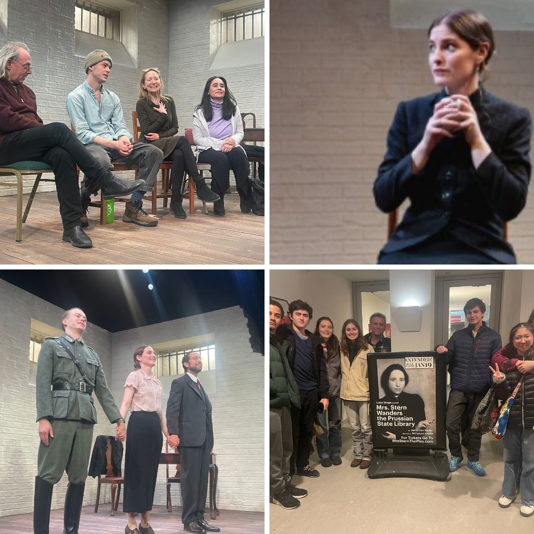 This past Friday night, Mr. Robert Sandler organized a trip for his Jewish History class to see Mrs. Stern Wanders the Prussian State Library at the Women’s Project Theater. The title character, Mrs. Stern, is actually a young Hannah Arendt, who at the time went by her married name, Johanna Stern. In the play, Arendt reflects on her arrest, recalling her famous interview with Günter Gaus, in which she explains that after the Reichstag fire of 1933, she could no longer avoid politics. While she briefly considered emigrating, she ultimately decided to stay and assist the Zionist cause by alerting the international community to the atrocities occurring in Germany. Arendt was arrested, and the play uses her description of that experience to examine the dangers of arbitrary rule and the essence of totalitarian regimes.