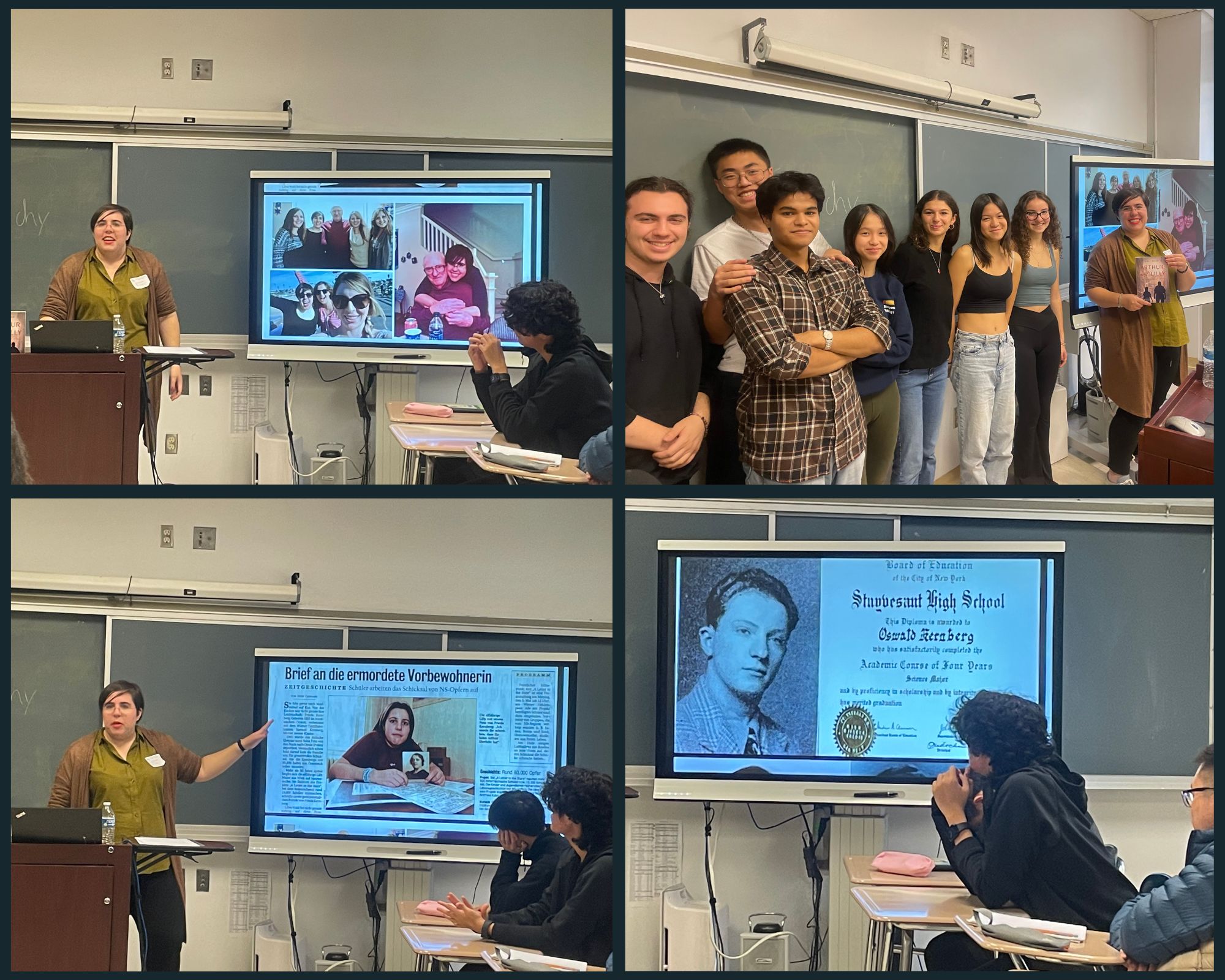 Mr. Robert Sandler shares that this week, his Jewish History class had Austrian historian Lily Maier present a book talk on her newest publication Arthur and Lily: The Girl and the Holocaust Survivor. She came to Stuyvesant because after he escaped Nazi occupied Europe and arrived in NYC, Arthur graduated from Stuyvesant in 1947. It was a fascinating lecture!