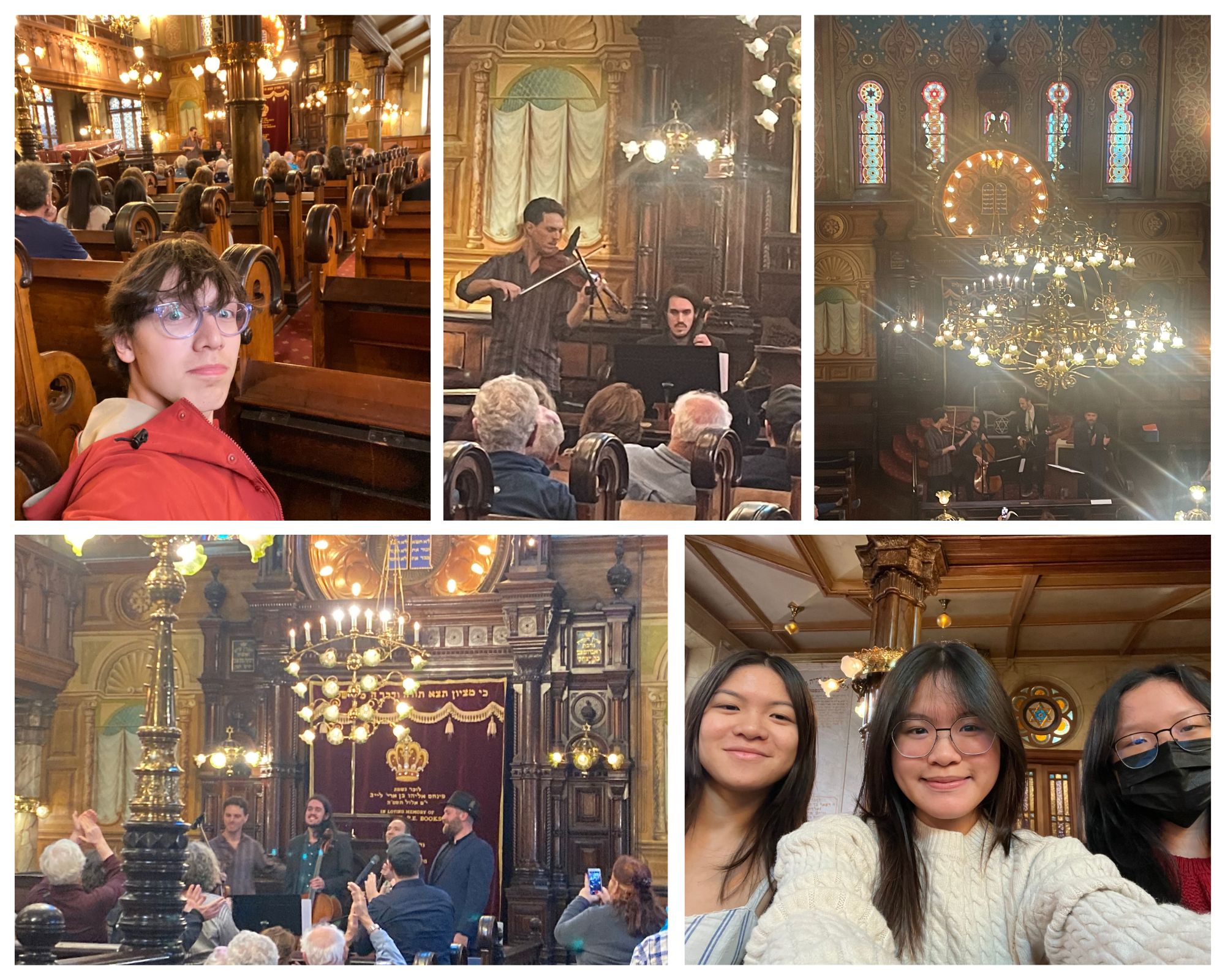 Mr. Robert Sandler took a small group of students from his Jewish history class to the Museum at Eldridge Street for an afternoon of music with the foremost Klezmer violinist Jake Shulman-Ment and virtuous cantor Yoel Kohn. Kohn played the kind of traditional chazones (cantorial music) one might have heard at the Eldridge Street Synagogue at the turn of the century. While klezmer represented the secular side of the musical coin in Ashkenazi communities of Eastern Europe, and cantorial represented the religious side, these two vital Jewish art forms share a common folklore and a common heart.