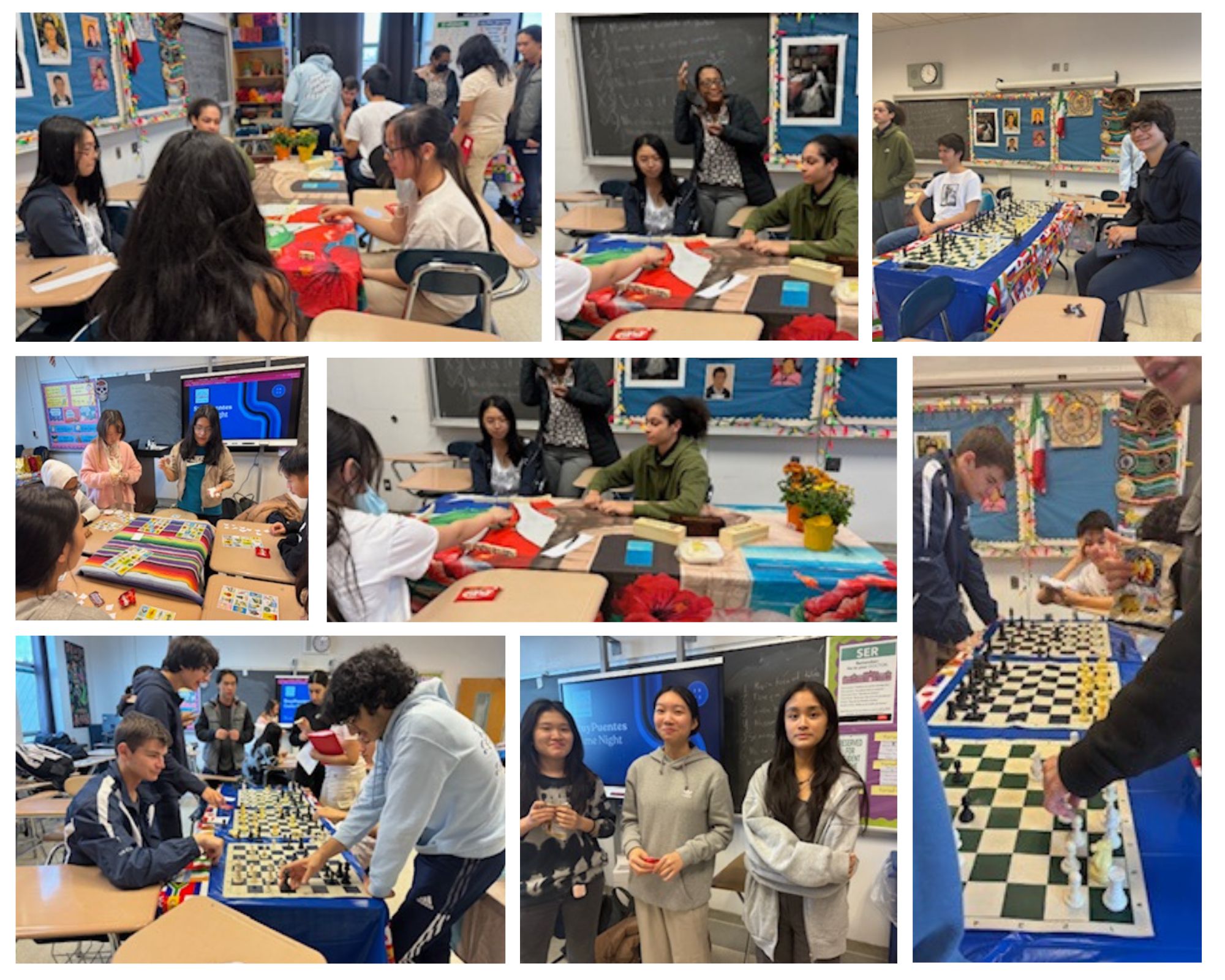 The first game night at Stuy’s Puentes a la Hispanidad was a blast!!! Students had a great time practicing their Spanish while learning about the history and rules behind traditional board games like Chess, Dominoes and Lotería. Club leaders took turns explaining and modeling the rules and attendees listened carefully as they applied them while munching on some of their favorite local and traditional Hispanic sweets! They bonded over learning something new and winning a game or two. Stay tuned for our upcoming Noche de Juegos Parte II and so much more.
