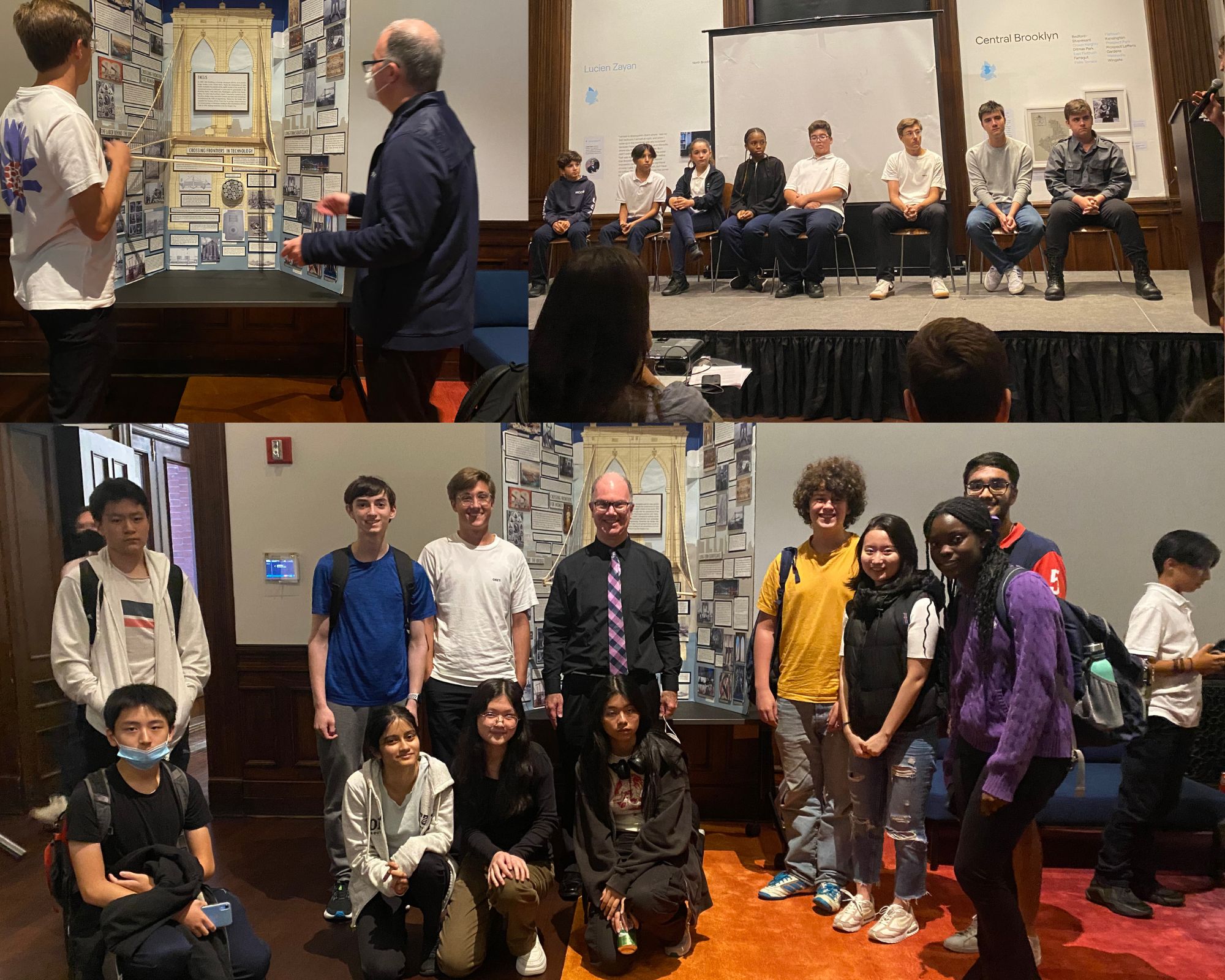 Our students' winning project "Crossing the Bridge to Brooklyn: Innovation, Prosperity and Freedom by Giles El-Assal, Daniel Murdock, and Kaeden Ruparel, was a showcase at the NYC History Day Kick off event that Mr. MordecaI Moore and Ms. Roseanny Genao accompanied students to. Giles was also on a Q and A panel for the event at the newly renovated Brooklyn Historical Society. To view a full size collage click here.