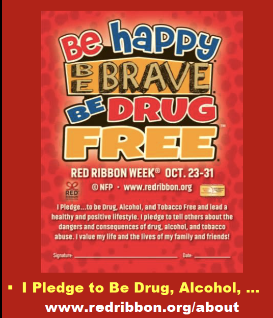 Take the Drug Free Pledge during Red Ribbon Week - Nationally! Read more on Mr. Colon's Calendar and in his SPARK October Newsletter #5