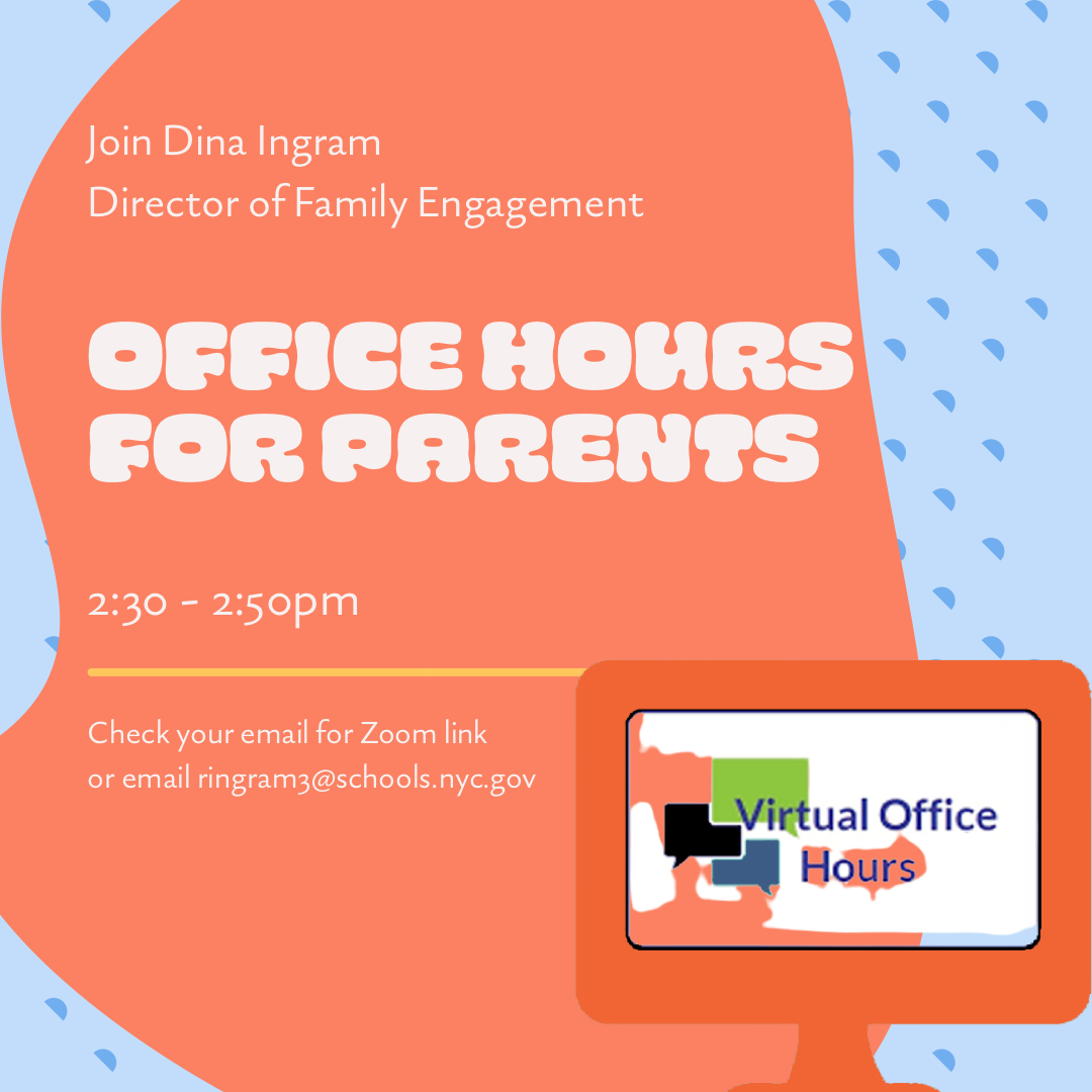 Office Hours for Parents! Join me during Office Hours from 2:30-3:50pm to meet other parents, discuss questions and topics of interest and share ideas and tips. Parents and guardians will receive the Zoom link (recurring so save it!) We'll meet everyday possible and post a weekly schedule. We will also add other timeframes convenient to parents throughout.