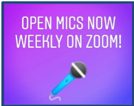Open Mic is every Friday at 5pm on Zoom! Virtually! Zoom.us/j/98551854854?pwd