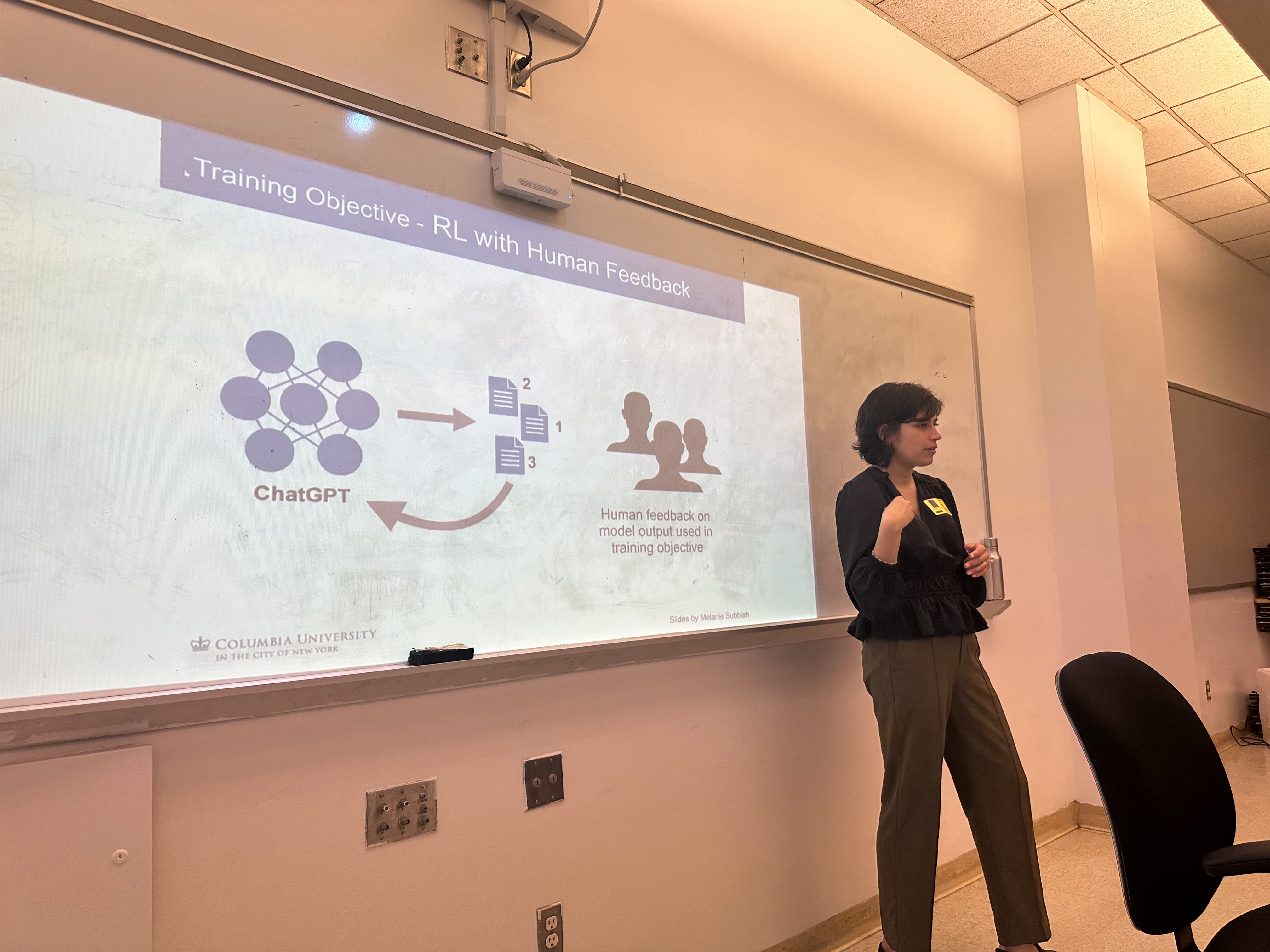 Phd candidate Melanie Subbiah speaks to Research classes on AI