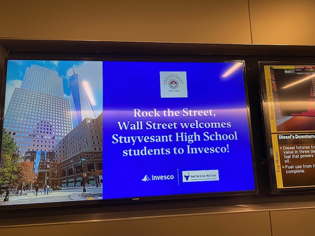 In December, Stuy students along with Mr. Harvey Blumm and Mr. Angel Colon participated in the 5th annual Rock the Street, Wall Street Young Women in Business, Finance, Leadership and STEM trip at the Invesco Corporation. We had 33 out of 72 submitted applicants ranging from Freshmen to Seniors.