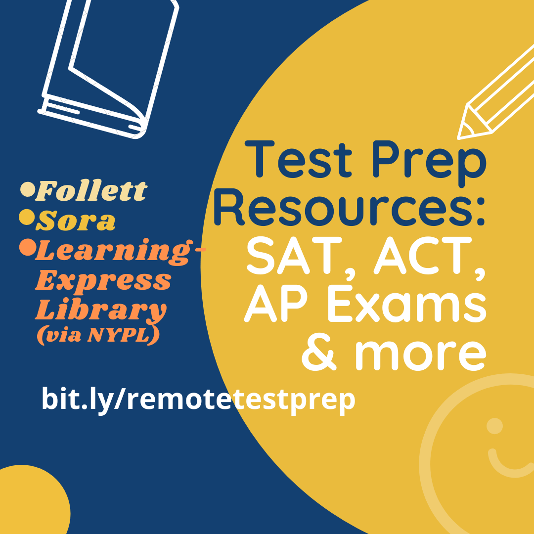 Test Prep materials for SAT, ACT, AP Exams and more are available remotely from the Stuy Library and the New York Public Library. For login information go to bit.ly/remotetestprep