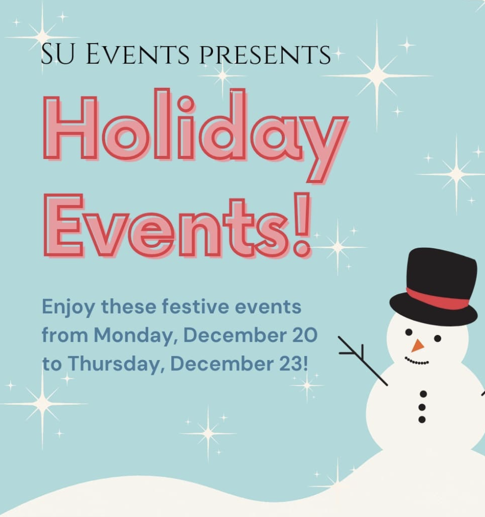 In celebration of the holidays, the Student Union Events Department is excited to announce Holiday Spirit Week! The events for this week are as follow: