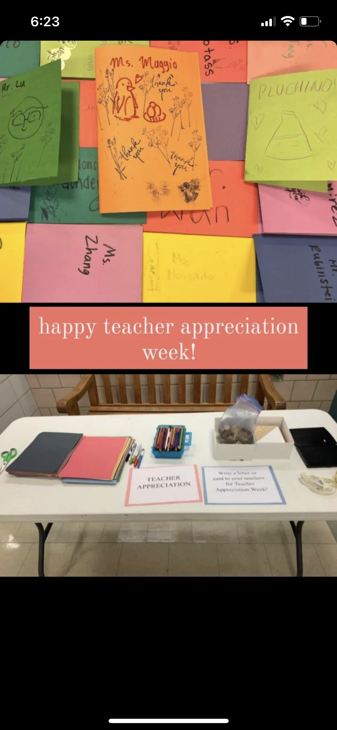 Stuy's Student Union hosted a table for students to show their appreciation during Teacher Appreciation Week! Student created cards and expressed their gratitude 😊❤️ (Photo credit: Stuy SU)