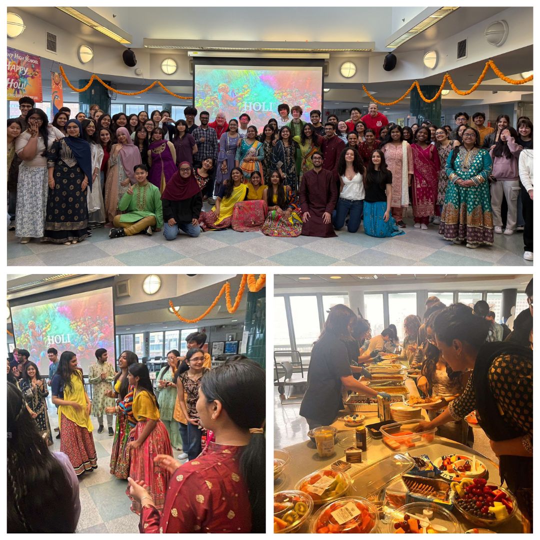 On the Friday before the Spring Break, 100 students, parents and faculty gathered to celebrate Holi. The event showcased the significance of Holi, Indian classical and contemporary dance, popular South Asian music, and delicious food. Parents, staff, and students enjoyed cultural arts and activities provided by the collaboration of faculty (Mr. Colon, Ms. Ingram, Mr. Moran, Ms. Pedrick, and the Cafeteria staff) and many student-run clubs (SAYA, Indian Culture Club, Hindu Students Council, Classical Dance Club, Red Cross, Key Club, and ARISTA). The Holi event closed with everyone enjoying delicious and authentic Indian entrees from samosas, buttered chicken, paneer tikka masela, jeera rice to sweet desserts, gulab jumon, and tarmind and cilantro chutney.
