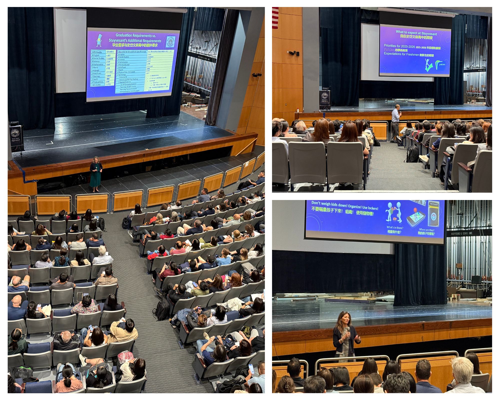 On September 18, Stuyvesant hosted it's 10th annual 'Stuy 101' Freshman family workshop in the theater. Families of freshmen gathered for fellowship, a Stuy trivia game, and a review of policies and expectations from Principal Yu; learned how to make best use of their school counselor by Assistant Principal, Ms. Pedrick, and learned tips & tricks of being a Stuy parent from Ms. Ingram. We had a lively Q&A session that followed. Many thanks to the Parent's Association for their volunteers from the hospitality committee and spirit wear sales committee! Here is a digital folder of everything we covered!