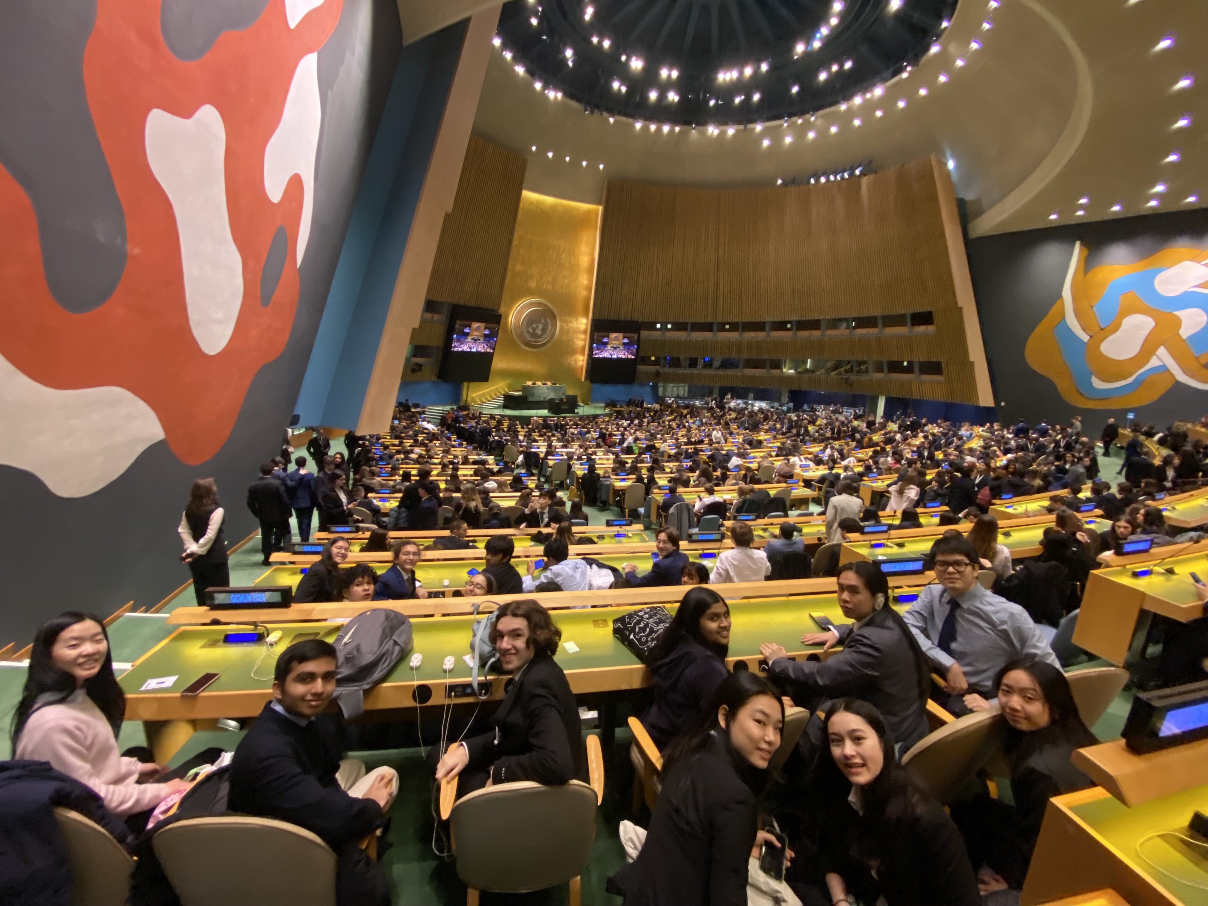 From February 22nd to February 24th, 24 delegates from Stuy Model United Nations attended the 2024 Global Citizens Model United Nations conference in Manhattan with thousands of students from around the world, partly held at the UN building itself. Our team did a fantastic job, with freshmen Henry Le, Liam Wang, Mira Anant, Neil Suri, Sakib Fahim, Stanley Heller, Yana Bijoor, and Ziv Barel, sophomores Hannah Grimskog-Tran, Theresa Lau, and Zihe Huang, juniors Aeneas Merchant, Jai Shah, Mullika Saha, Nirvan Mulchandani, and Walker Simpson, and senior Violeta Zani winning awards. StuyMUN also took home an award for best medium delegation. Congrats to all!