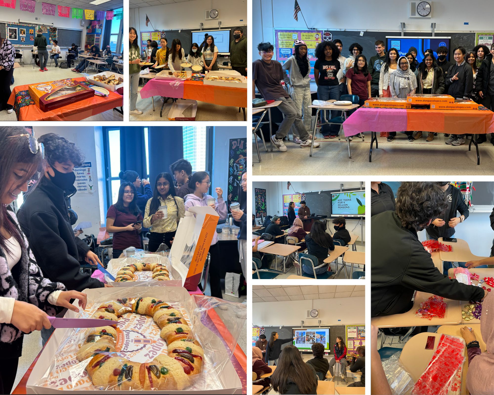 StuyPuentes members have enjoyed some very exciting couple of months. This past January 4th, the club celebratedThree Kings' Day known in Spanish as El Día de los Reyes Magos. Club members shared some cultural background on how the holiday is celebrated in different Latino countries and communities in the US. They also shared some personal anecdotes on how they celebrate with their Dominican, Ecuadorian, Mexican and Puerto Rican families every year in New York. They also discussed a short video where the Puerto Rican American play right and actor Lin Manuel Miranda talked about Reyes being his favorite time of the year growing up in Washington Heights with his Puerto Rican family. Students then enjoyed some hot chocolate, traditional Rosca or Roscón de Reyes courtesy of Don Paco's Bakery, and our generous Parent Association. Club members also exchanged Secret Santas or angelitos to mark the end of the celebration.