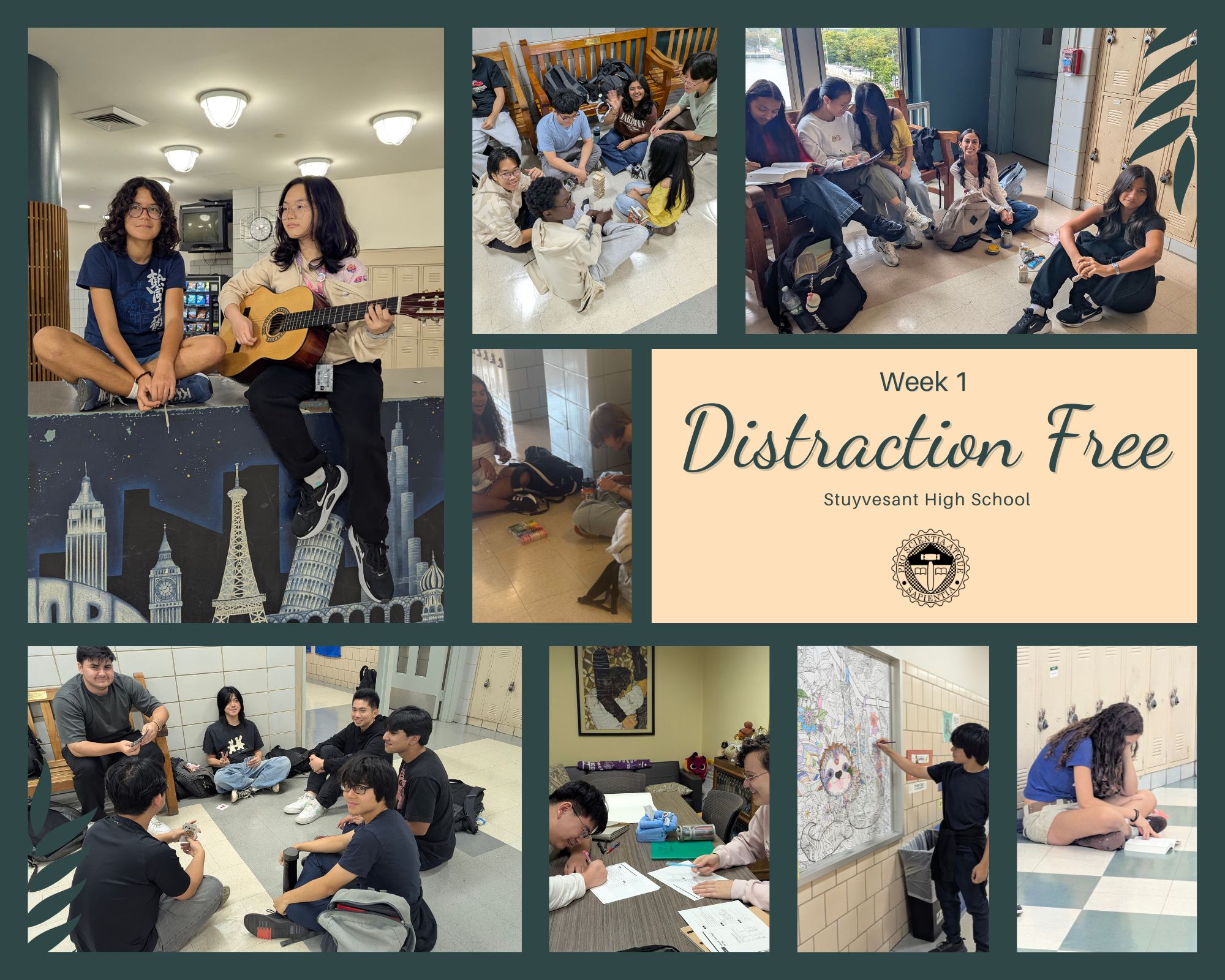Last week was the first full week of the 2025-2026. It was also our first week of the new Distraction Free learning in New York State! Students were not able to access internet-enabled devices throughout the day, but they found great ways to substitute for not having their smart phones, iPads, tablets, laptops and gaming devices by playing games together, getting classwork, homework and reading done, coloring, playing music, singing, snacking, doing crafts like needlepoint, threading, crochet, and the hallways were buzzing with chatter and laughter of making new friends and having a good time! While we know this is a big adjustment, we are so proud of our students for their positive attitude and we look forward to making more board games, activities and books available, and looking into ways for students to also get their academics done during free periods in the coming weeks. See a full size photo collage here.
