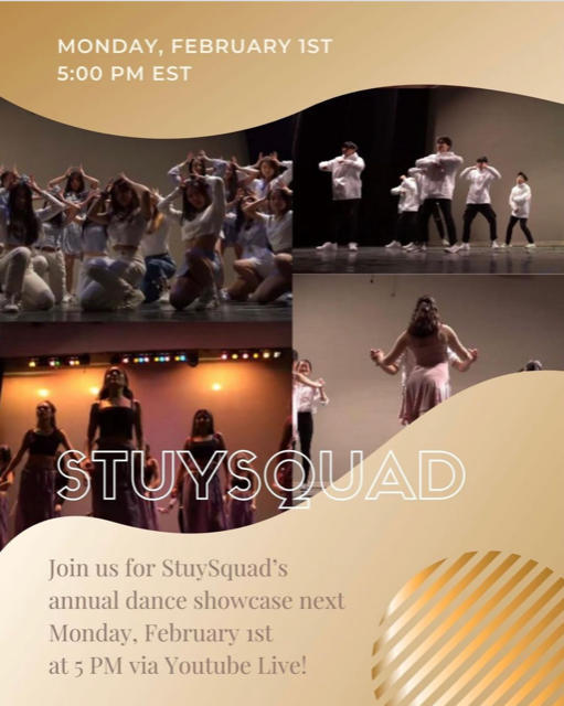 Celebrate the end of first semester by supporting StuySquad, Stuyvesant’s largest dance showcase with 13 crews this year! The show will be free and streamed live on YouTube on Monday, February 1st at 5:00 PM, so mark your calendars and get ready to cheer on your friends! You do not have to be from Stuy to attend, so feel free to invite your non-Stuy friends and family members as well. You can find the event page in our bio, and the link to the show will be available the day before.