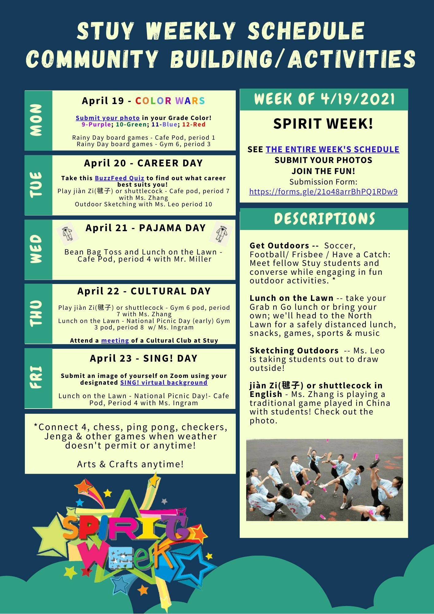Check out this week's acitivities! EVERYONE AT HOME AND IN SCHOOL - JOIN SPIRIT WEEK!!!