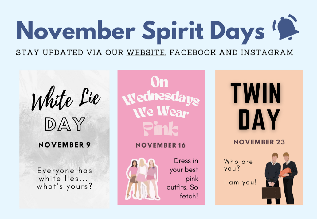 3. SPIRIT DAYS - We will be having several senior spirit days this month so read the chart! On spirit days, head to the senior atrium after 10th period for the chance to be featured in the yearbook!